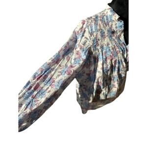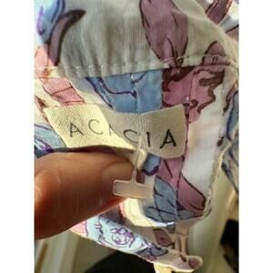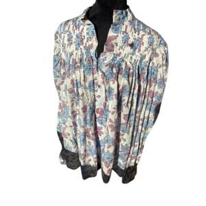 Elevate your wardrobe with this stunning Acacia Tally Willa Honey Top, a bohemian-inspired blouse crafted from lightweight 100% cotton poplin. This rare and coveted piece features a delicate floral print in soft hues of blue and mauve, creating a romantic, vintage-inspired aesthetic. The pleated pintuck detailing along the bodice and shoulders adds effortless texture and movement, while the button-down front and relaxed fit make it both stylish and comfortable.