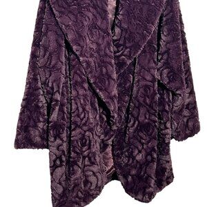 Rare Adrienne Landau Purple Roses Knee Length Oversized Long Coat Plush Luxe 3X