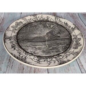 This exquisite 13.5" round plate from Royal Doulton's African Series features a stunning black and white lion design. Made in England in 1980's, this vintage historical plate is a must-have for collectors and enthusiasts alike. The plate is part of the Royal Doulton product line and has a printed backstamp.