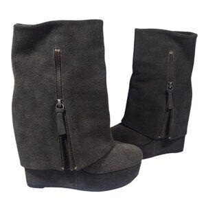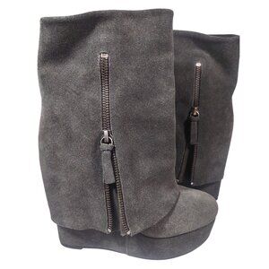 Rare Alice & Olivia Grey Foldover Hidden Heel Yeardley Boots SZ 7 37 Y2K Bratz