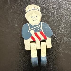 Rare Americana Painted Wood Refrigerator Magnet Betsy Ross and George Washington