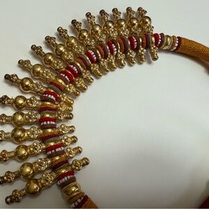 This necklace draws inspiration from ancient adornments worn during ceremonies and celebrations. Each element carries symbolic meaning—the dangling pendants traditionally representing prosperity and protection. Amrapali's discontinued collection is highly sought after by collectors and connoisseurs of ethnic jewelry worldwide.