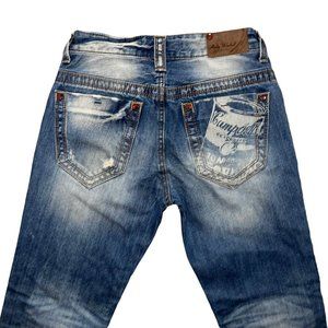 • Features: Distressed, Imprinted name, Campbell's Patch, Whiskering, The Campbell's design has been faded into the jeans