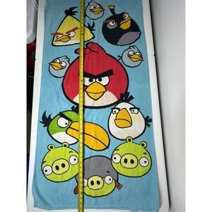 Rare Angry Birds Beach Buth Pigs Cotton Towel 51” X 26” Blue Yellow Green
