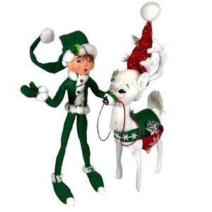 Rare Annalee Doll Lot Elf Riding Reindeer 1970s Large 20" Vintage Christmas 2 Pc. Approximately 19-20 inches tall with the hats. Preowned vintage condition. The glue on the reindeer's hair has darkened a bit from age. No rips, cuts, holes, or stains. Comes from a smoke and pet free home. Please see pictures for more details.