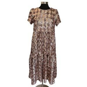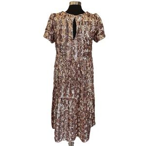 Rare Anthropologie Maeve Bernadette Sequined Midi Dress Rose Gold Chic Size M