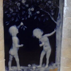 Rare Antique Pate Sur Pate Limoges French children picking apple (9"x7'x1.5}