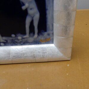 The product is an antique Limoges French porcelain figures of children picking apples, framed in a 9"x7"x1.5" display. This collectible piece features a blue cameo style design, originating from France in the early 1900s. The intricate details and originality of this porcelain artwork make it a unique and charming decorative addition to any collection.