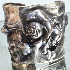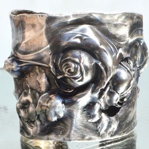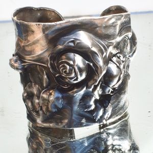 Rare Antique Solid Sterling Silver 925 Wide Cuff Floral Repoussé Wedding Bridal