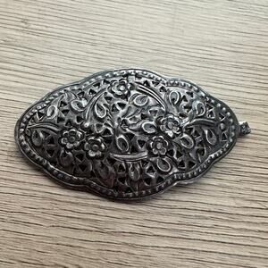 Rare Antique Sterling Victorian Edwardian Repousse Floral Hair Clip Barrette
