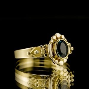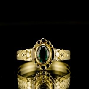 This absolutely breathtaking 1920's antique.35ctw natural earth mined bottle green tourmaline in 18k yellow gold cocktail ring belonged to my grandmother. It is a rare bottle green tourmaline set in a solid 18k yellow gold ring. Price is firm. Color of the stone is Fiery bottle green, clarity is translucent. Carat Weight is 0.35ctw. Gold weight is approximately 3 grams. Dimensions 10mm wide.