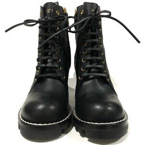 Description: Authentic LV Star Trail ranger boots. These are an extremely hard to find, stylish and extremely comfy boots. If you love empriente leather on your LV handbag, you will LOVE this all leather boot on your feet. The leather is embossed with LV monogram. I got these because I kept seeing that the canvas version of these cracks in the toe and tongue area. These are all calf leather, so durability is great to me.