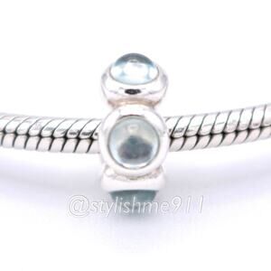 Rare Authentic Pandora Retired Sterling Silver Seaside Kiss Blue Topaz Cabochon Bead, S 925 ALE