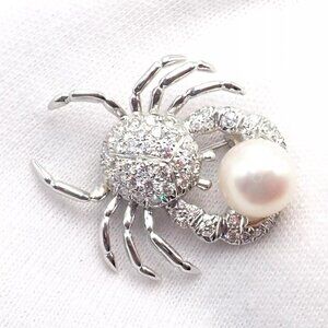 The Tiffany & Co Platinum Crab 1.50ct Diamond Pearl Pin Brooch is a luxurious and whimsical accessory.