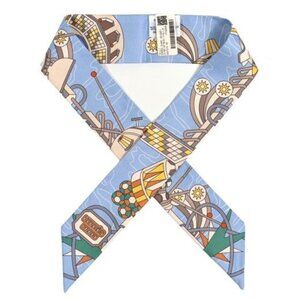 Rare Authentic Vintage HERMES Odyssey Beige Bleu Ciel&Jaune Vif 100% Silk Twilly