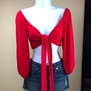 Rare! BLUE LIFE Red tie front wrap top from PLANET BLUE