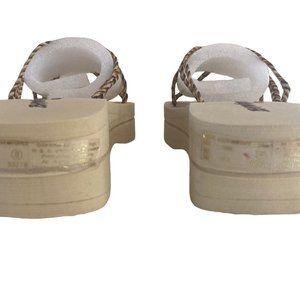 For your consideration is a great pair of Baywatch Gear Women's Vintage 90s Platform Chunky Slides Sandals with strappy braid detailing and toe ring design. Colors are beige, brown and tan. Made of quality man made materials. Hard to find item. A nice summer sandal for the beach and boardwalk.