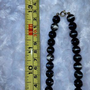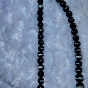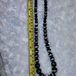 Rare Find- Black and White swirl Beaded Necklace. spring ring clasp...26"L $15.00