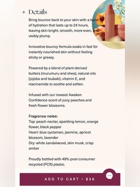 A rich, pudding-like body cream that renews skin with a refreshing burst of hydration, restoring bounce and radiance while wrapping you in a bright, peach-floral scent.