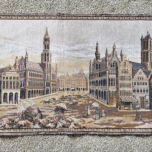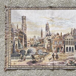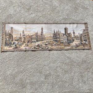 Rare Belgium Tapestry Brussels Bruges Gent Wall Hanging City Scene