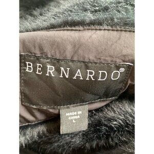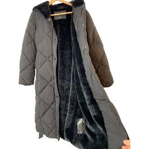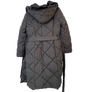 Rare Bernardo Diamond Quilt Fur Lined Long Coat Belt Large Black Hood RA10713