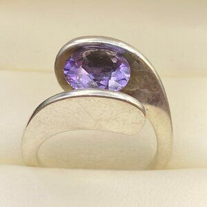 Rare Blue Purple Topaz Sterling Silver Modernist Ring Sz. 8.75 - 7.4 gm 3 Carats