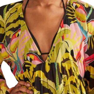 Rare Boden Empire Maxi Kaftan Layering Dress 8P Paradise Parrot Semi-Sheer Boho