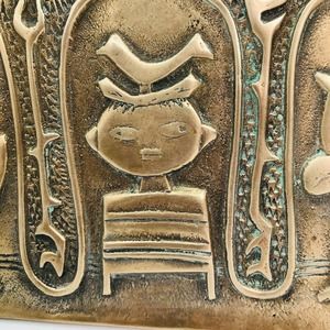 Unmarked vintage brass plaque show 3 mystical figures measures 9.5" x 5'5" x .25"