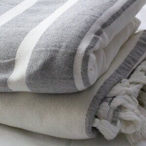 This a Rare Brooklinen Set of 2 Cotton Turkish Flat weave & Terry Cloth Combination. It is rare to find Turkish towels lined with terry cloth. Perfect for Bath, Beach, Spa Towels 66" x 48" Approx. $150 Retail Price