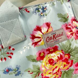 ~ Rare Cath Kidston XL Bag Tote Floral Coated Blue Handles Snap Zip Lined Pocket