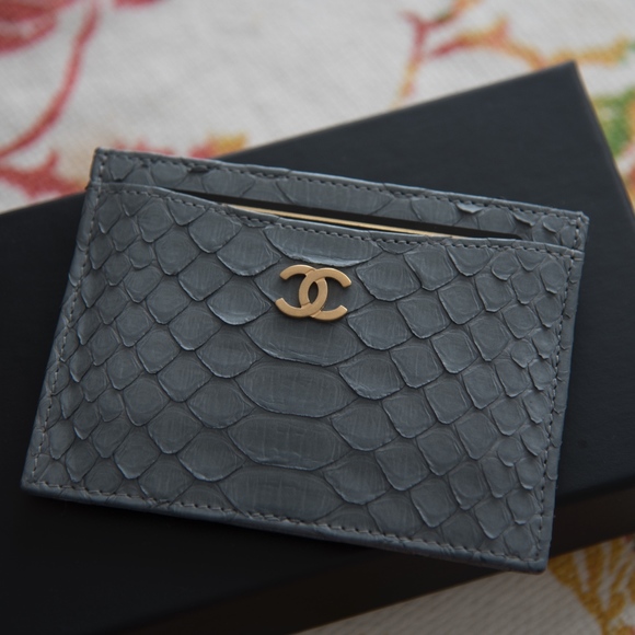 Rare Chanel Cardholder Python Light Blue