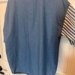 Stylish Dior shirt featuring a blue and white striped design. Perfect for casual outings or a smart-casual look!
