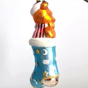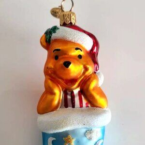 Rare Christopher Radko Disney WINNIE THE POOH Light Blue Stocking Glass Ornament