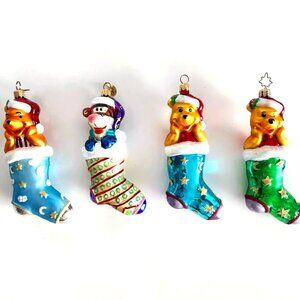 Rare Christopher Radko Disney WINNIE THE POOH Teal Blue Stocking Glass Ornament