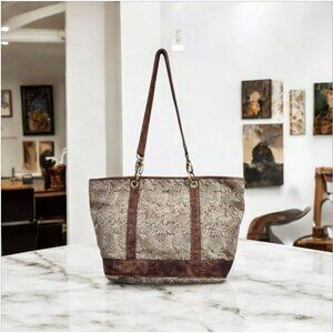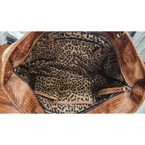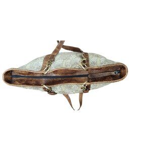 Rare Clever Carriage Company Embroidered lace & Croc Embossed Leather Large Tote
