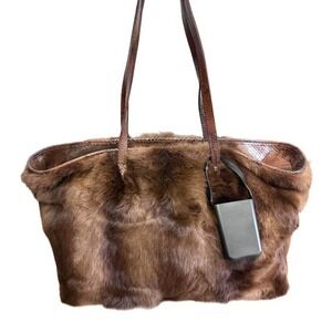 Rare Clever Carriage Company brown fur and snakeskin large satchel-style bag - never used. May be vintage, as the person who owned it was a buyer for Bloomingdale's and she has many vintage and up to the mid-2000s bags in this collection. The bag is very unique and looks incredible. Never used, and has a dust bag.