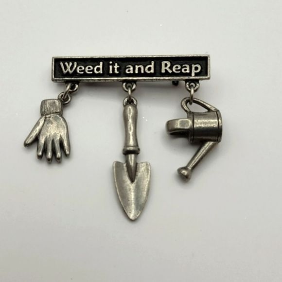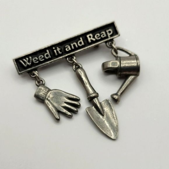 Rare Clift pewter "Weed it an Reap" vintage pin/brooch