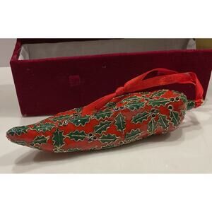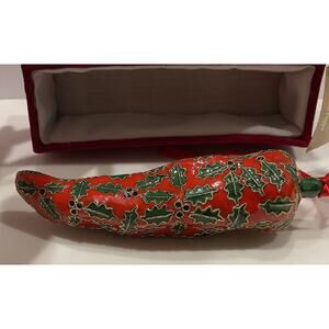 Rare Cloisonné Red Hot Chili Pepper Holly Berry Christmas Ornament With Box 5.5"
