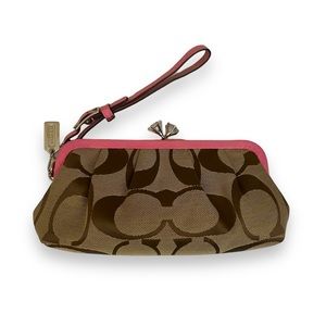 Rare Coach Limited Edition Jeweled Kisslock Wristlet Clutch Bag Hot Pink Brown