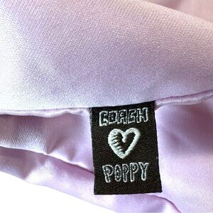 •	Features metallic Coach Poppy logo zipper pulls, lavender satin interior