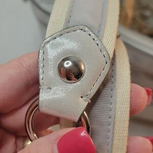 shimmering leather that is so pretty it will take your breath away! Polished nickel hardware, shimmering silver leather