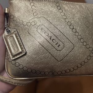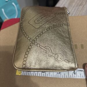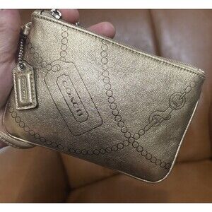Rare Collector COACH Hangtag Motif Tan Leather Wristlet
