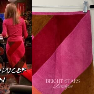 Rare Colorblock Suede Skirt ASO Phoebe Buffay Friends Pink Red Brown Patchwork