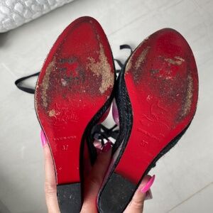 Pink, red, black. Like new condition throughout, only wear is on soles, comes with LB dust bags. Stunning, romantic and classy! You will get compliments in these. Fun for date night, holidays, etc! These are comfortable to wear and allow for fluctuating given open toe.