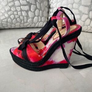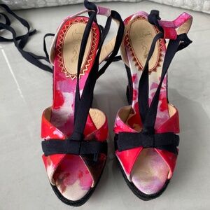 Rare, Colorful, Comfortable ! Christian Louboutin up-tie wedge Heel
