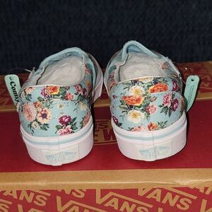Rare ComfyCush Slip On Vans Sample Shoes Size 13 (Garden Floral) Aquatic / White