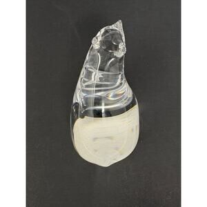 This Rare Cristais Hering Polar Bear Paperweight is a stunning piece of art glass made in Brazil. Hand-blown, heavy and crafted with clear crystal, this 3" paperweight features a glossy finish and a beautifully detailed polar bear design. Produced in the late 20th century, this original piece showcases the brand's unique style and artistic flair. Perfect for collectors or those looking to add a touch of elegance to their decor, this vintage paperweight is a one-of-a-kind treasure from Brazil.