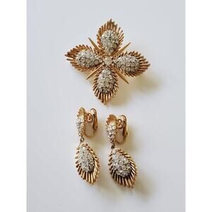 Rare Crown Trifari Maltese Brooch and Earring Set