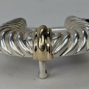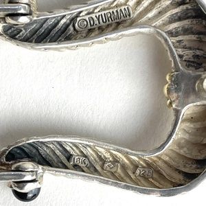 This is a rare David Yurman belt buckle because instead of a14k gold accent, it has 18k in addition to the sterling silver and onyx. It's from the iconic Cable Classic collection. It is stamped with the David Yurman name as well as marked 18K and .925. It fits a belt that is 1" wide.