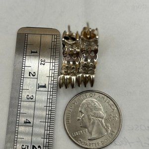 I am not sure if this artist is still active. These earring are lovely half huggie silver plated hoops, pierced posts with ear backs signed by the artist. They have been stored in my jewelry box for years. They have some slight darkening due to age. They are gorgeous earrings. This artist's work was inspired by her work as a biologist scientist, as she was inspired by patterns found in nature. See earrings with ruler and coin to verify size. Never worn, but have been stored for many years. Fast and secure shipping. Smoke free home. Rulers and displays are not not included. This designer had a trunk show at Henri Bendel about 15 years ago. That was the last I saw of her jewelry.